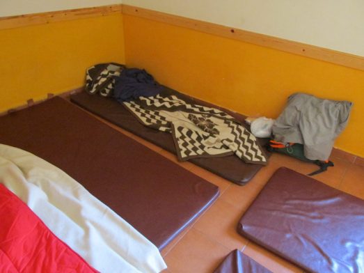En el campo, el equipo de dormir se monta sobre una colchoneta aislante para que no te llegue la humedad del suelo. Eso se consigue con la esterilla que todo el mundo lleva en el “kit peregrino” y se usa poco. De hecho en el Camino Francés, en verano, si no hay sitio en el albergue y has de acabar durmiendo en un polideportivo, y para colmo no quedan colchonetas, lo mejores que busques cartones y te hagas un colchoncito bajo la esterilla.