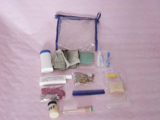 Este neceser es una bolsa de plástico rígido transparente que originalmente venía con varias botellitas de plástico de 100 cc y que se vende para llevar en el equipaje de mano de los aviones.