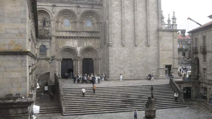El edificio que se puede ver frente a la puerta de la Catedral es un decorado, la casa do Cabido. Un edificio de muy poca anchura edificado ahí para cubrir las casas sencillas que había detrás, suele ser lugar de exposiciones tras haber sido rehabilitado hace unos pocos años.