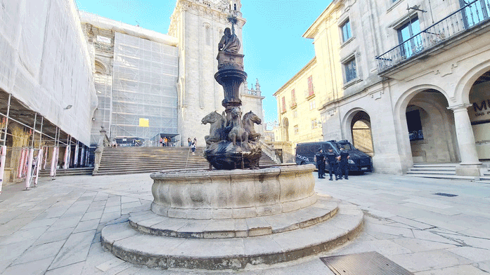 Si un picheleiro, compostelano o santiagueño, que los tres gentilicios son lo mismo, te induce a buscar las pezuñas de los caballos de la fuente de Platerías buscándolas dentro del agua ten por seguro que te salpicará en la cara bautizándote como uno más de la ciudad.